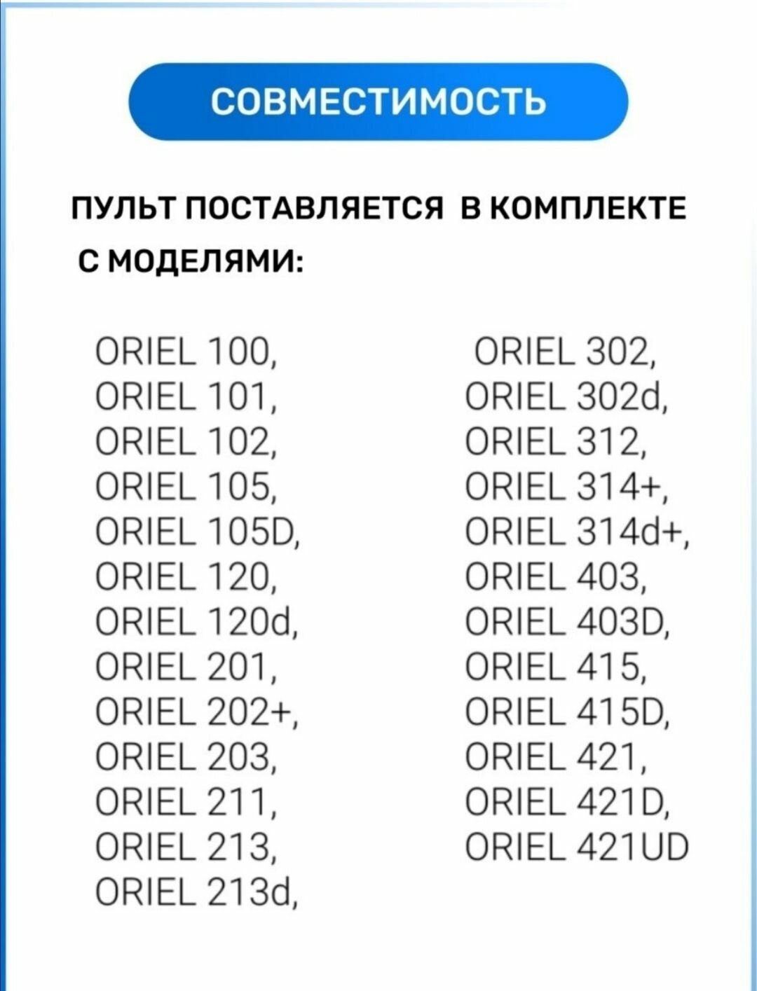 | Производитель совместимых устройств | Oriel / универсальный |