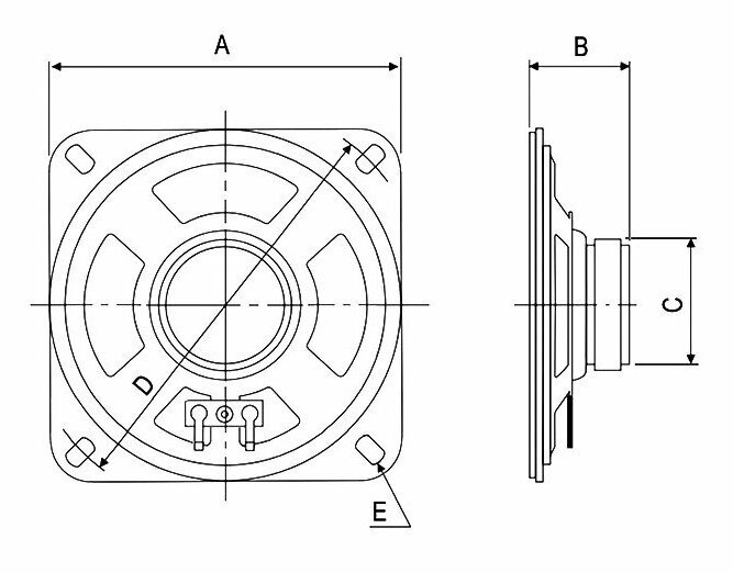 Динамик, аналог 5ГДШ-9, сопр. 8 Ом, мощн: ном. 6 Вт, 110-15000 Гц, 92 дБ, размеры: габ. 102х102х35 мм, уст. 80х80 мм информация:
