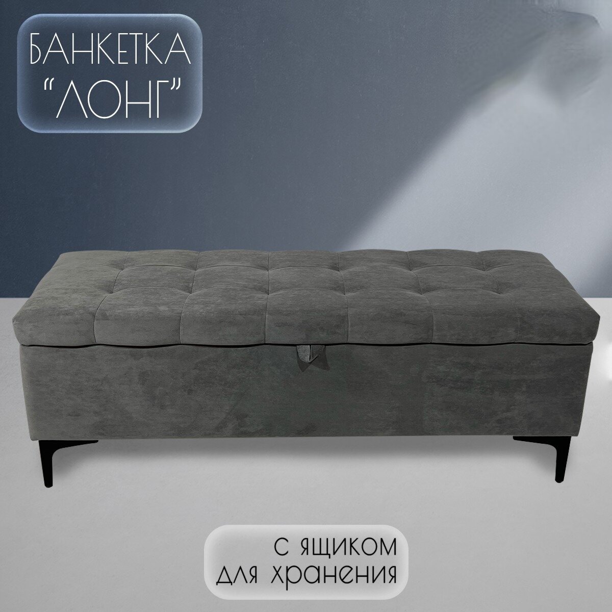 10 цен на Пуфик банкетка "Лонг" с ящиком для хранения/ Велюр/Серый/ 120x40x43 (см)