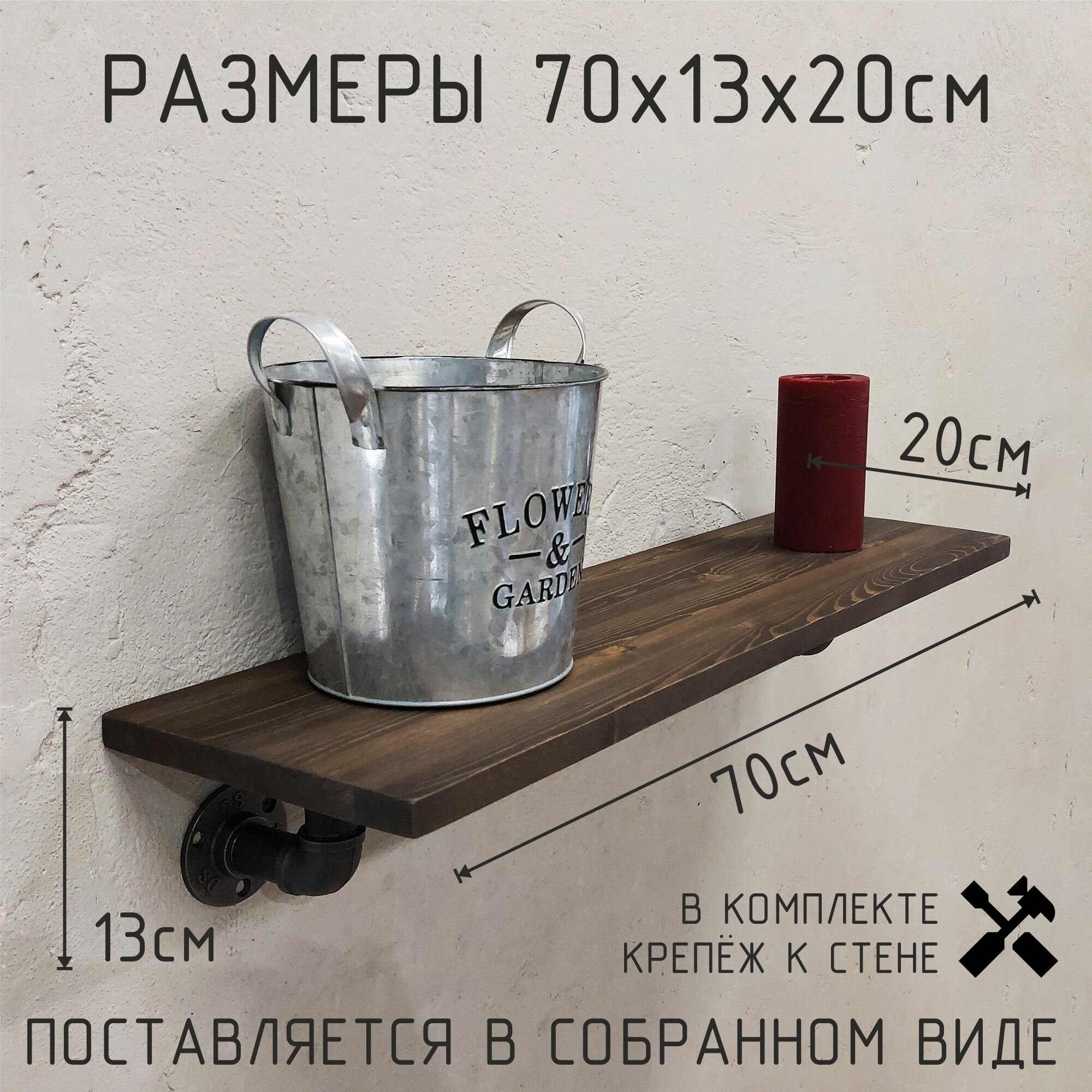 Полка лофт настенная для книг, для ванной, для кухни, в прихожую и гостинную 70 см. Цвет: Венге информация: