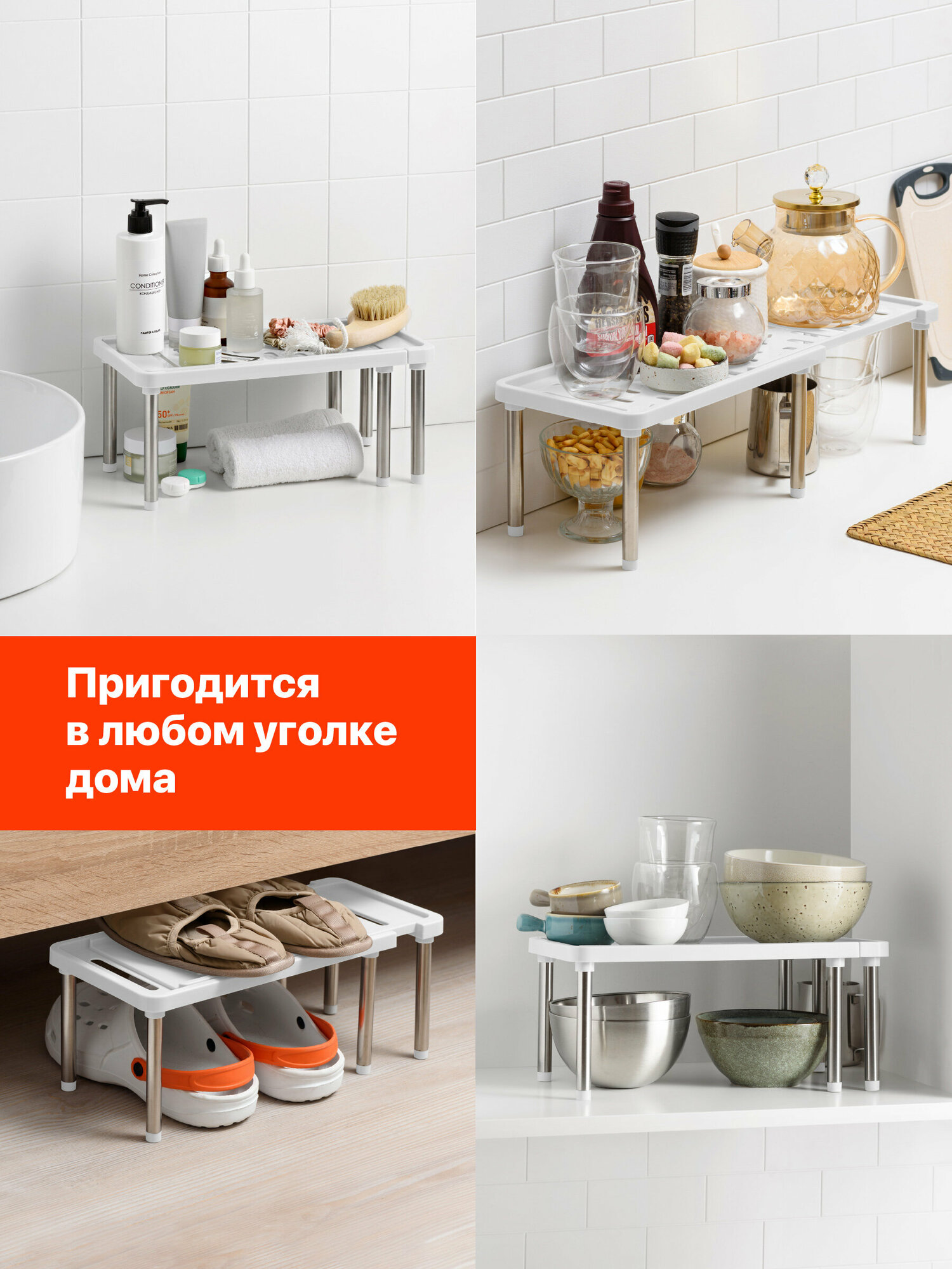 Отзывы на Полка в шкаф раздвижная Birdhouse/ Полочка дополнительная в шкаф для кухни/ Полка подставка в кухонный шкаф, Белый