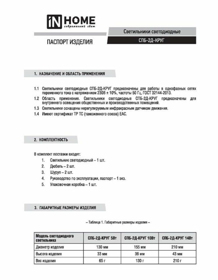 | Дополнительная информация | Светильник светодиодный - 1 шт. |