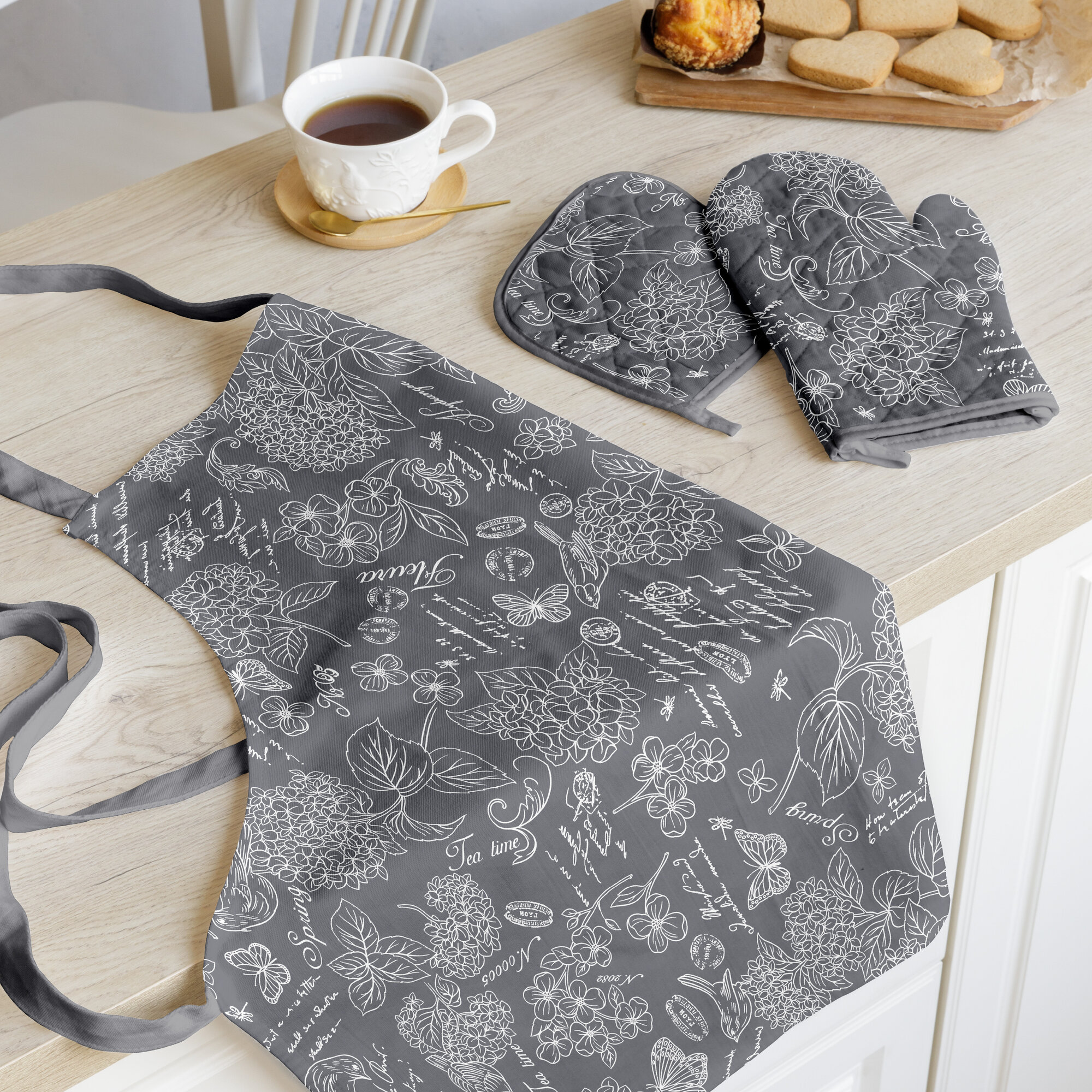10 цен на Комплект кухонный рогожка (прихватка 18х18, прихватка-рукавица 18х28, фартук 60х70) "Mia Cara" рис 30284-11 Жозефина графит