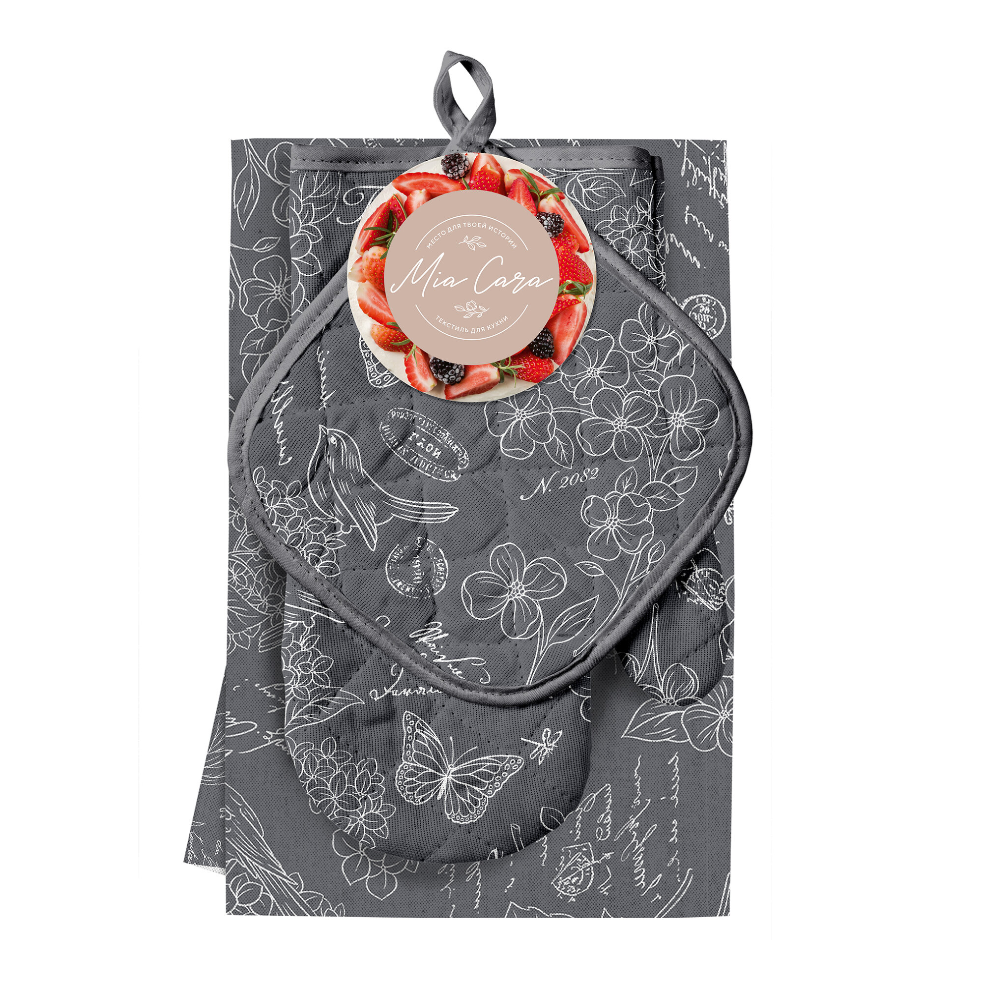 Подарочный набор прихватки для кухни (прихватка 18х18, прихватка-рукавица 18х28) "Mia Cara" рис 30284-11 Жозефина графит 278 ₽