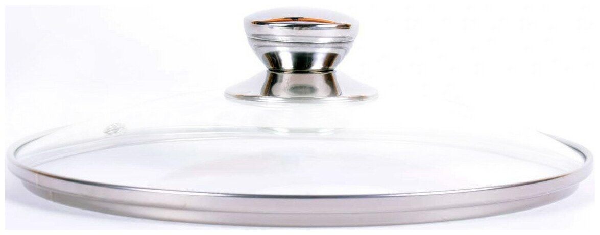 Крышка стеклянная TimA с металлическим ободком и круглой ручкой (нержавеющая сталь), пароотвод,, диаметр 20 см
