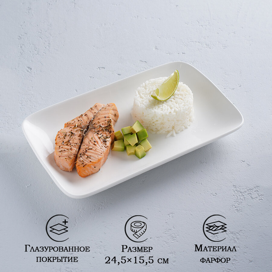 Блюдо фарфоровое прямоугольное Доляна White Label, 24,5×15,5 см, цвет белый 340 ₽