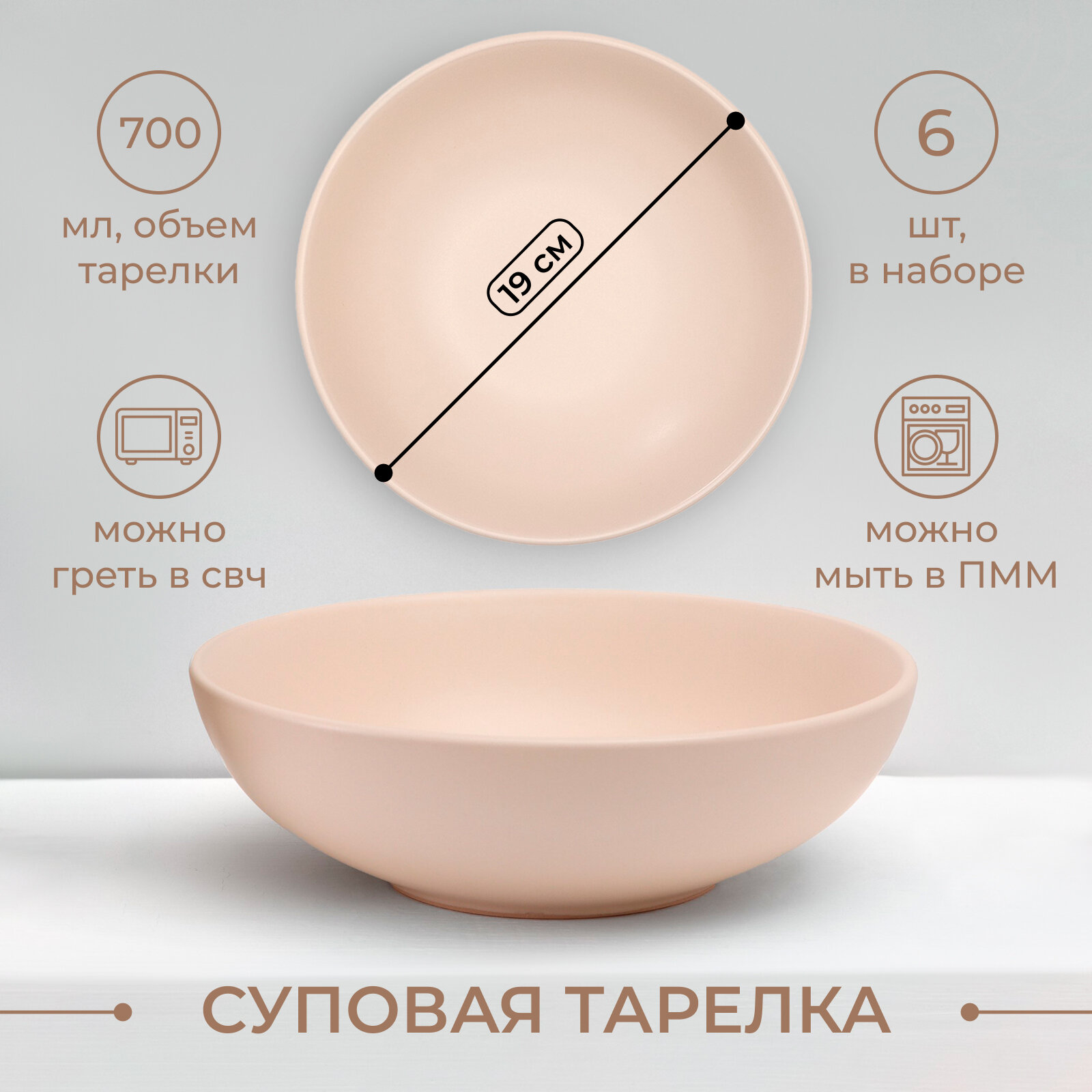 Набор тарелок керамический Доляна «Пастель», 18 предметов: 6 тарелок d=19 см, 6 тарелок d=27 см, 6 мисок d=19 см, цвет крем-брюле 4 466 ₽
