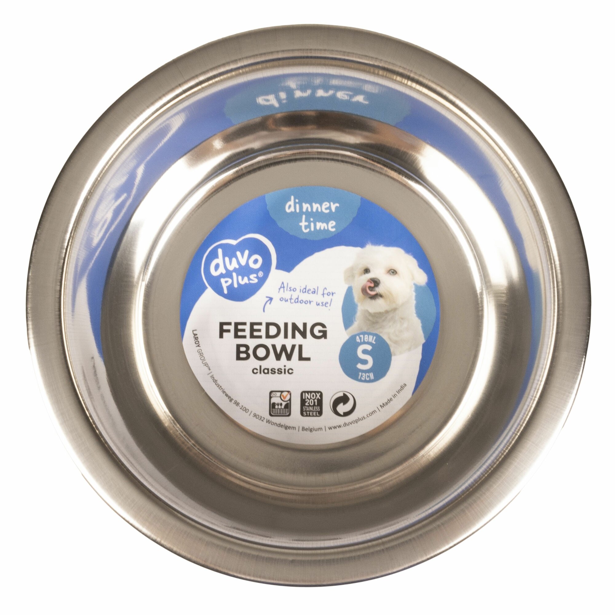 Миска для собак металлическая DUVO+ глубокая, D13см/470мл (Бельгия)