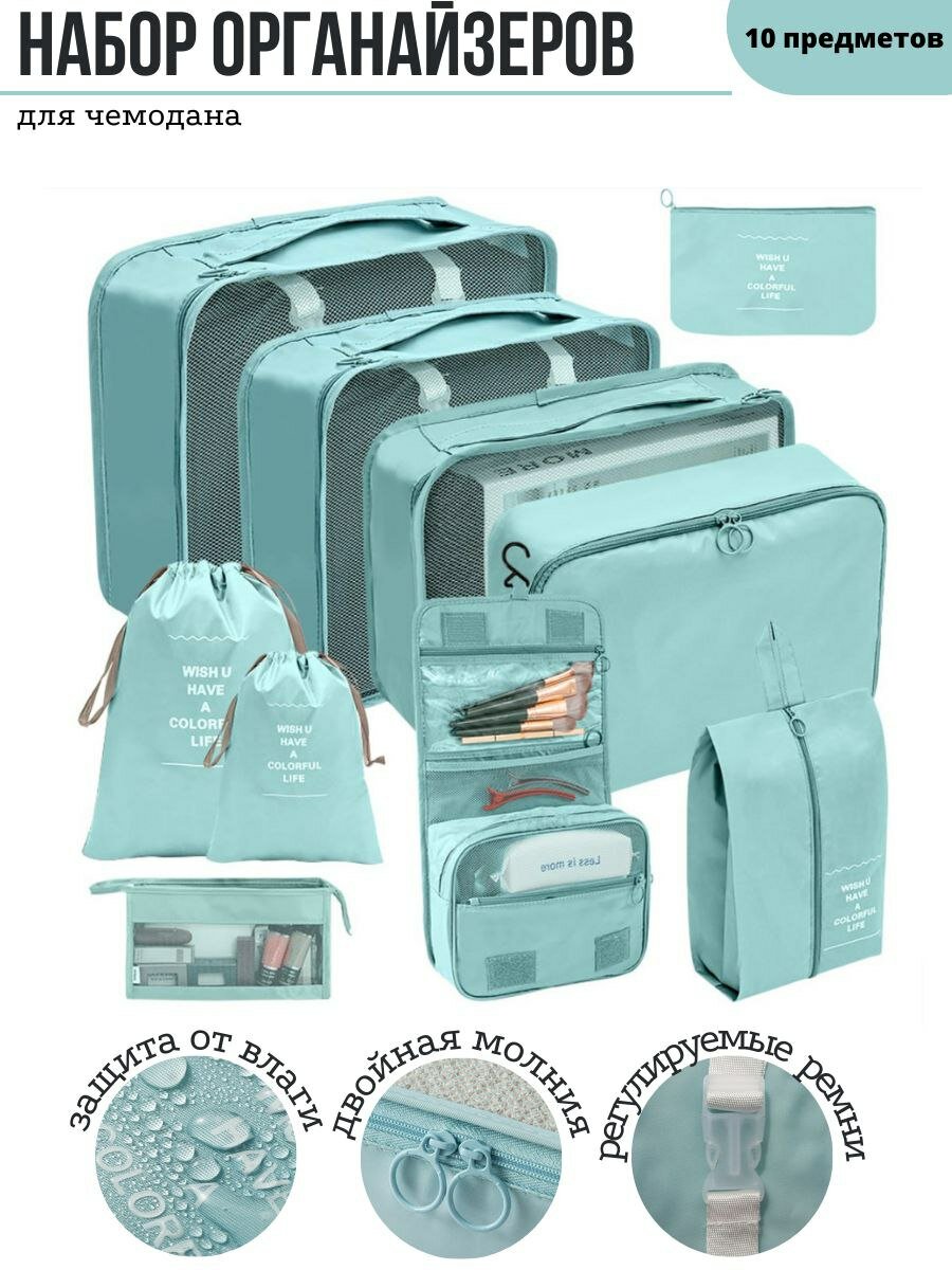Дорожный набор/ Органайзер для хранения вещей в чемодане яркий тиффани 10 шт. 2 000 ₽