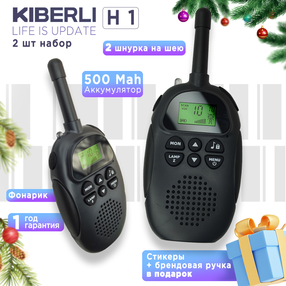 KIBERLI H1 Комплект игровых раций для детей 10 мелодий, радионяня дальность 3 км. Детские рации, черный информация: