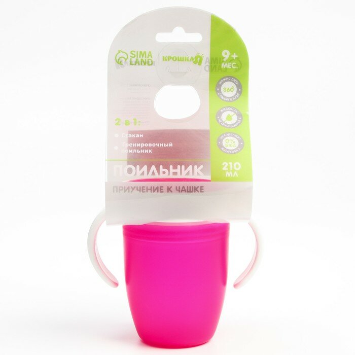 Поильник - непроливайка детский тренировочный «360», 240 мл., с ручками, цвет розовый