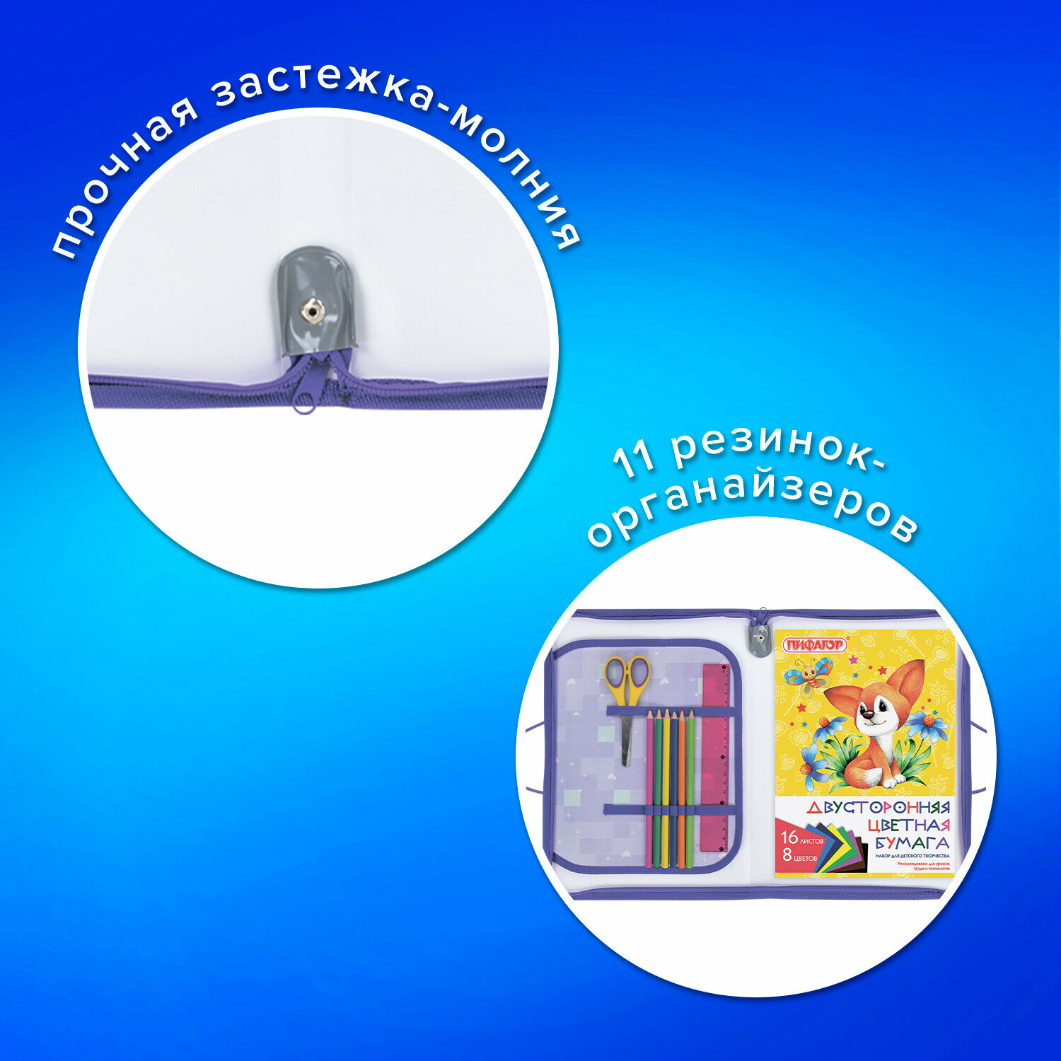 Папка для уроков труда / школы для школьника на молнии пластиковая с органайзером Пифагор А4, 1 отделение, пластик, Mouse, 270877 239 ₽