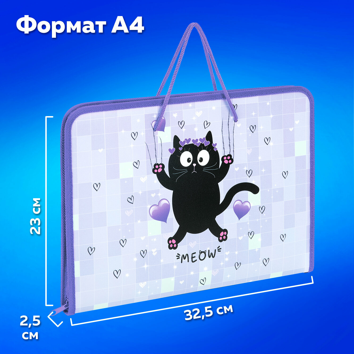 Папка для труда на молнии с ручками Пифагор А4, 1 отделение, пластик, органайзер, Falling cat, 272226 информация:
