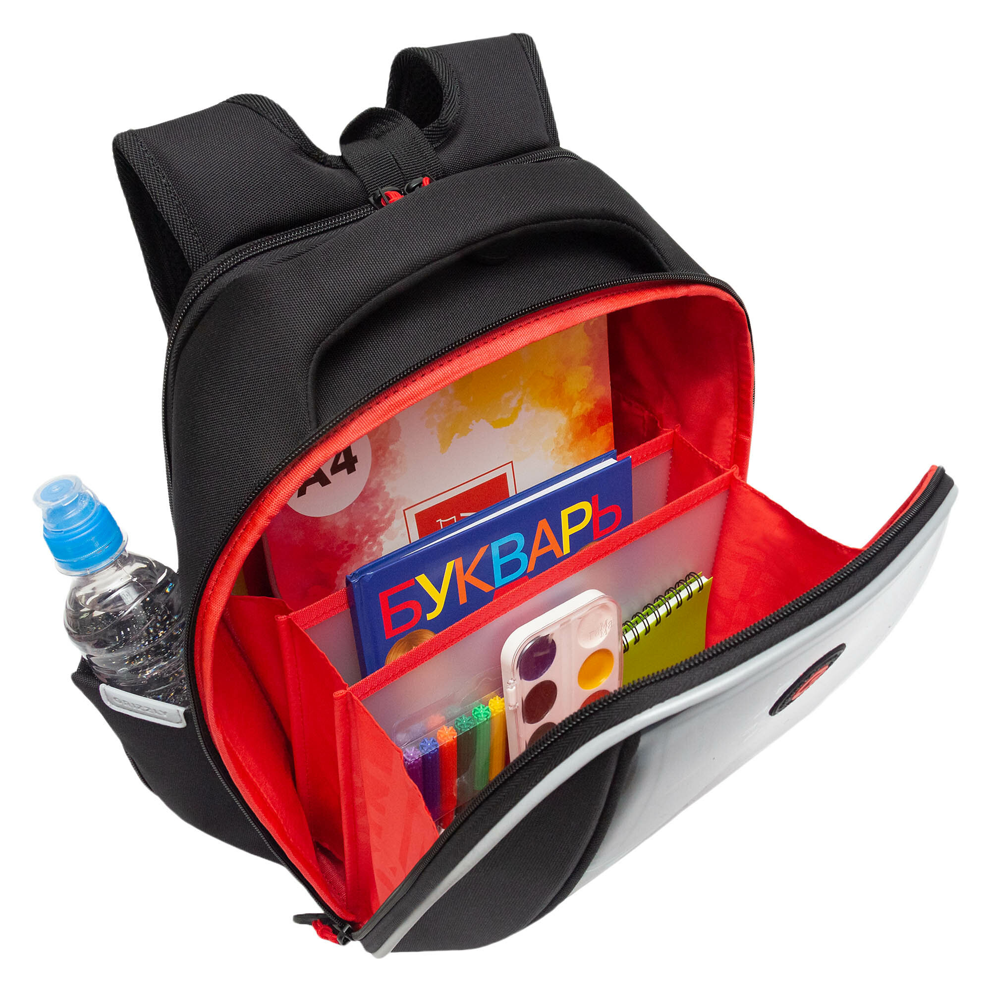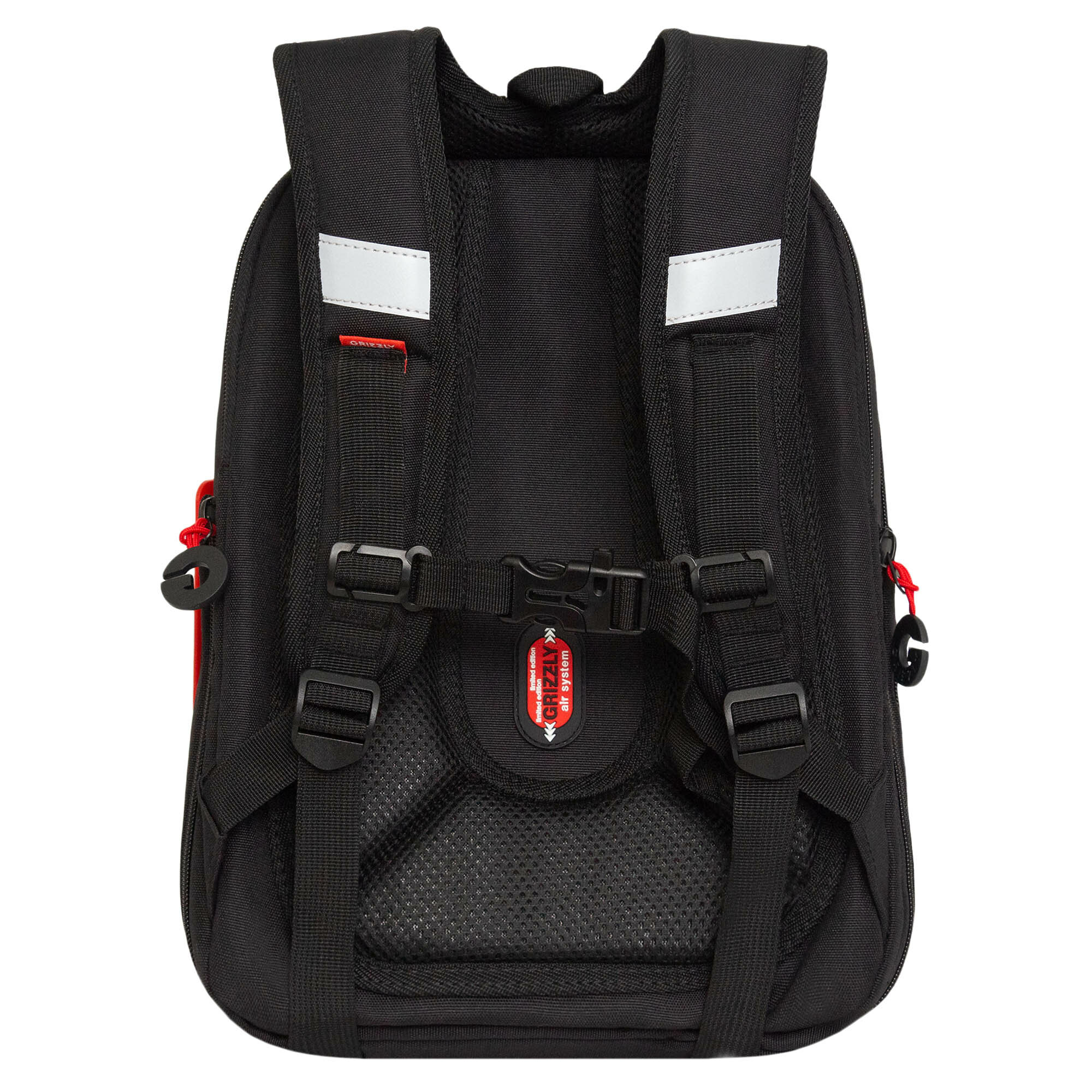 Школьный рюкзак с эргономичной спинкой GRIZZLY RU-436-2/1 черный - красный, 2 отделения, 832грамм, 47x32x17см
