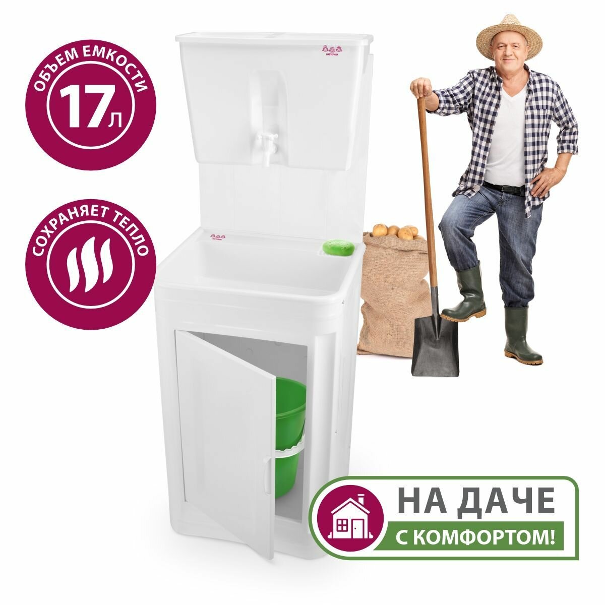 Умывальник дачный с подогревом "Успех+" стальной 30 литров, белый