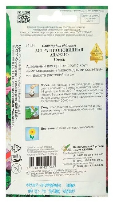 "Астра пионовидная Адажио смесь, 90 семян" информация: