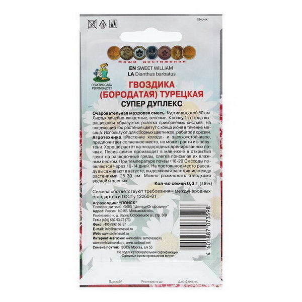10 цен на Семена цветов Гвоздика Турецкая "Супер Дуплекс" 0.3 г