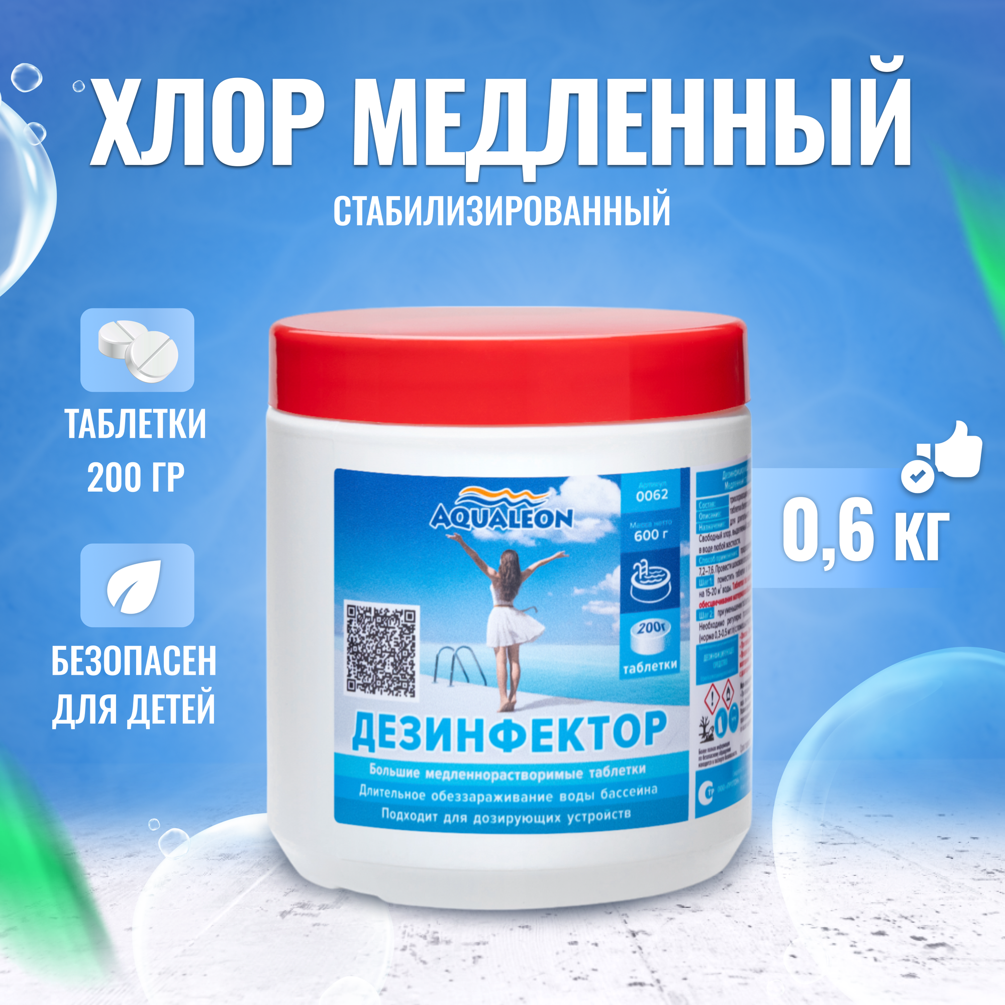 Хлор медленный Дезинфектор для бассейна таблетки (по 200 г) 0.6 кг Aqualeon МСХ - Химия для дезинфекции и очистки воды бассейна / Средство для ухода за водой "Аквалеон" 1 205 ₽
