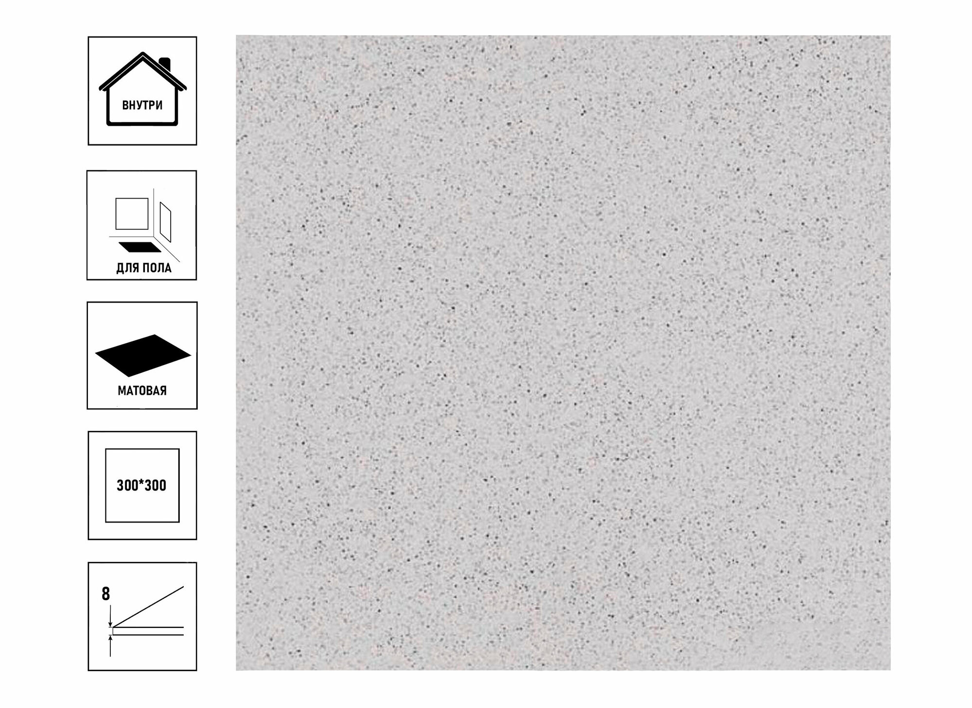 Шахтинская плитка Техногрес Керамогранит напольный Профи св-сер 01 300x300 (1-й сорт) упаковка ( 15 шт, 1,35 м^2) 010405001408 информация: