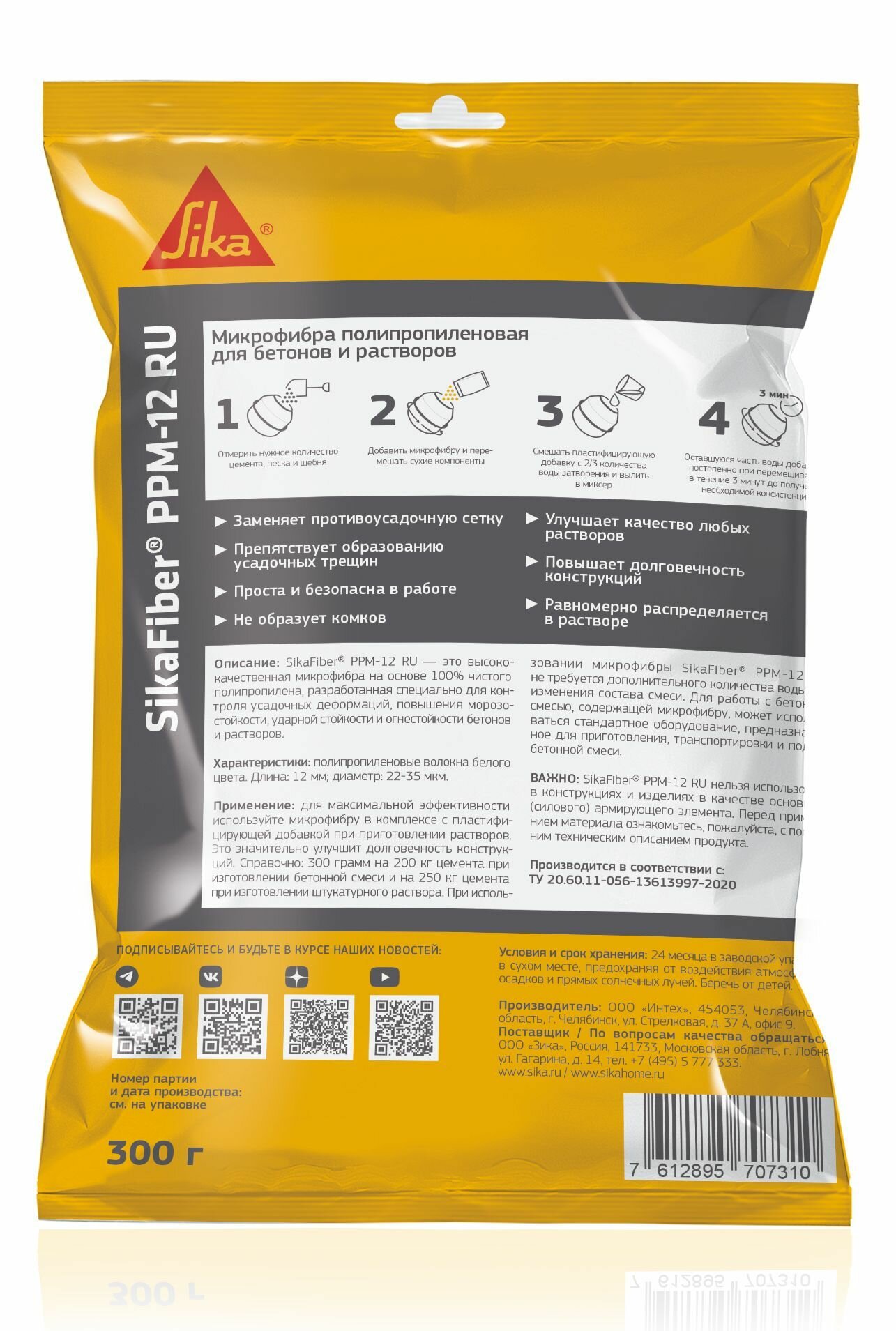 | Дополнительная информация | Армирующая фибра для бетона SikaFiber PPM-12 150 г |