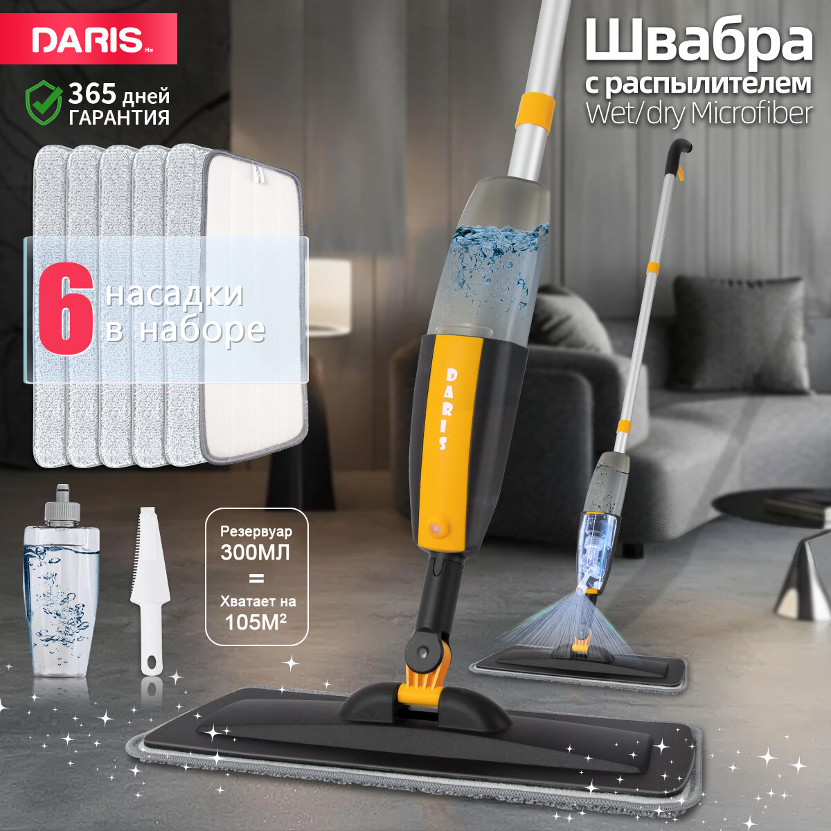 Швабра-распылитель DARIS, многоразовая, моющаяся, 3 насадки, бытовая, кухонная швабра для деревянного пола