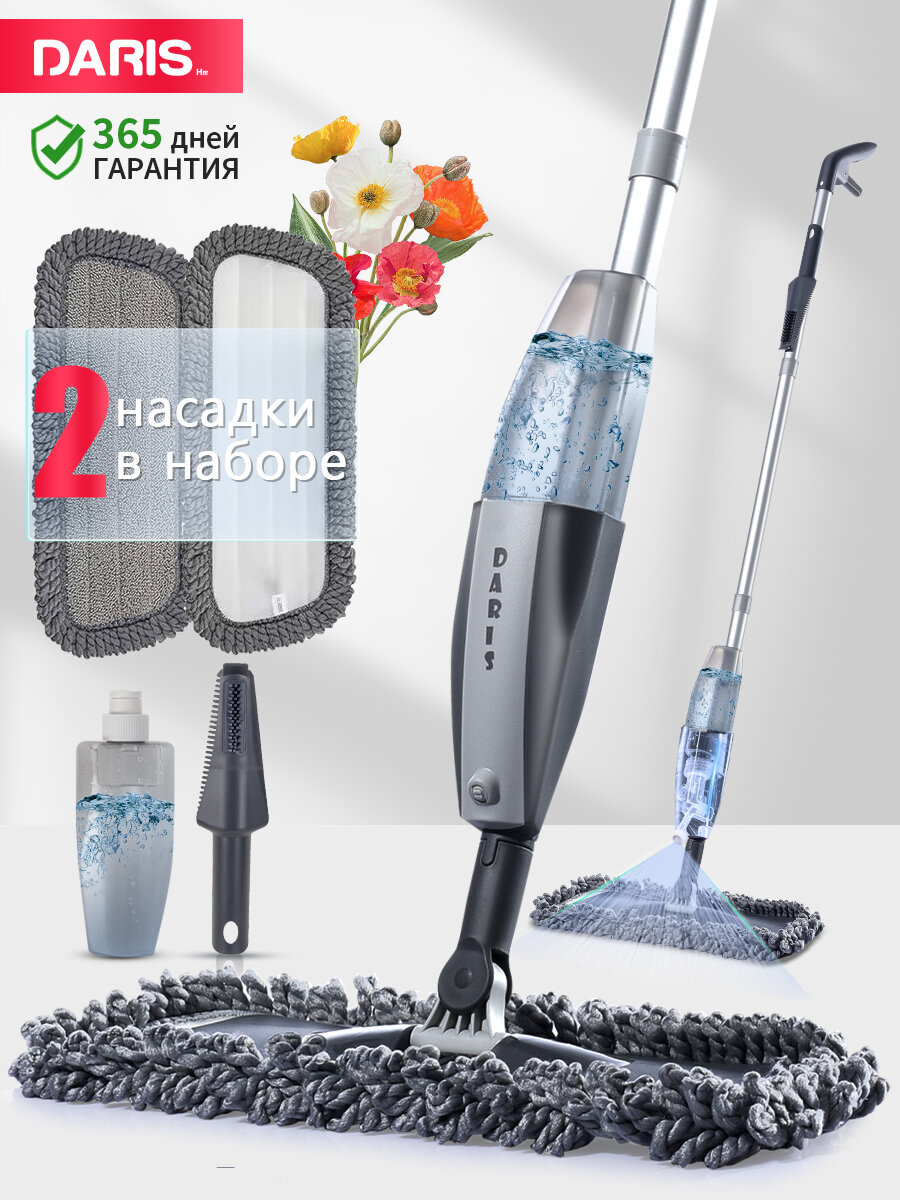 10 цен на DARIS Швабра с распылителем 300 мл +2 насадки из микрофибры +1 кисть, длина 120 см