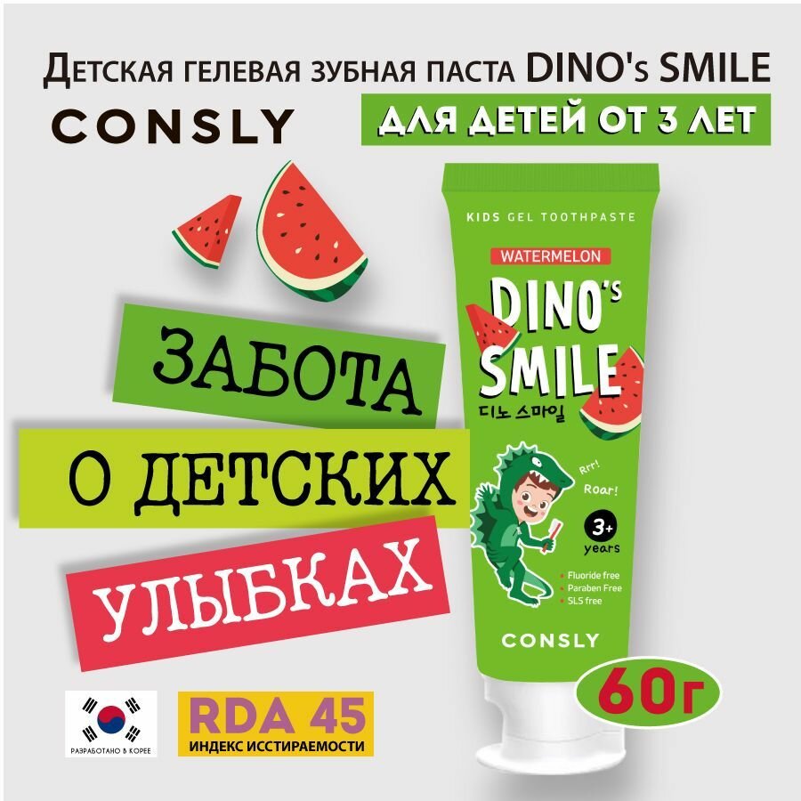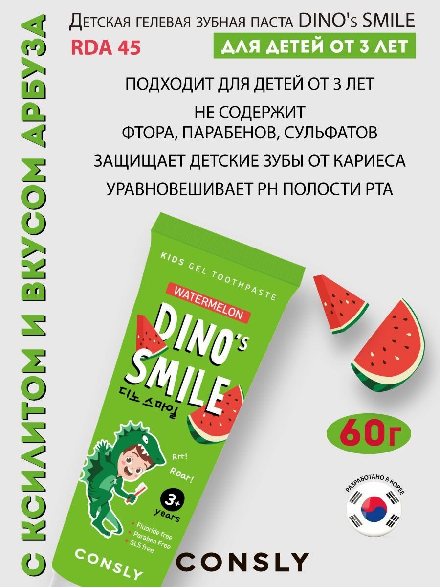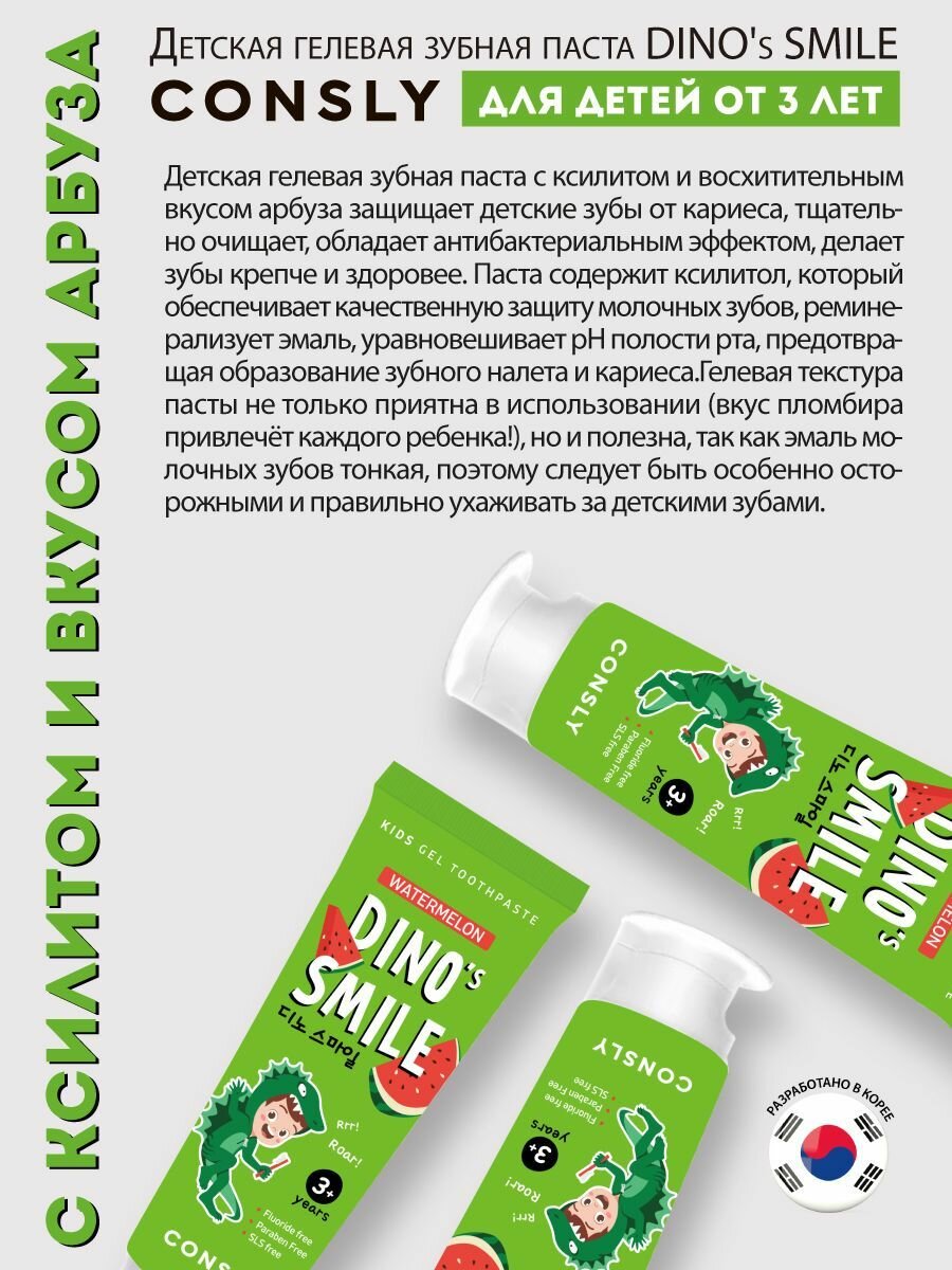 Детская гелевая зубная паста Consly Dino's smile c ксилитом и вкусом арбуза, 60 г информация:
