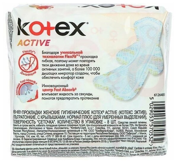Kotex Прокладки, Ultra Active, Normal, 8 шт информация: