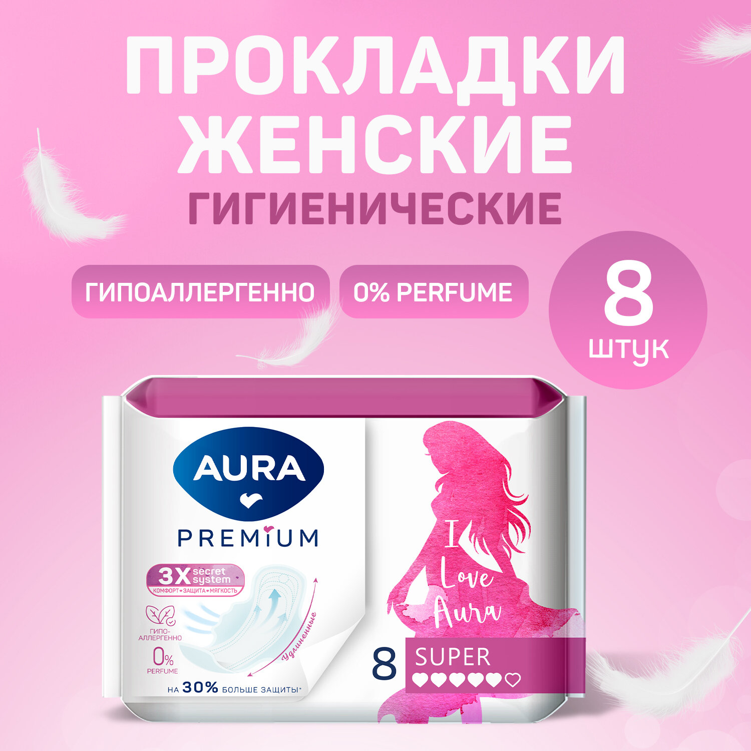 AURA PREMIUM Прокладки женские гигиенические SUPER 8шт