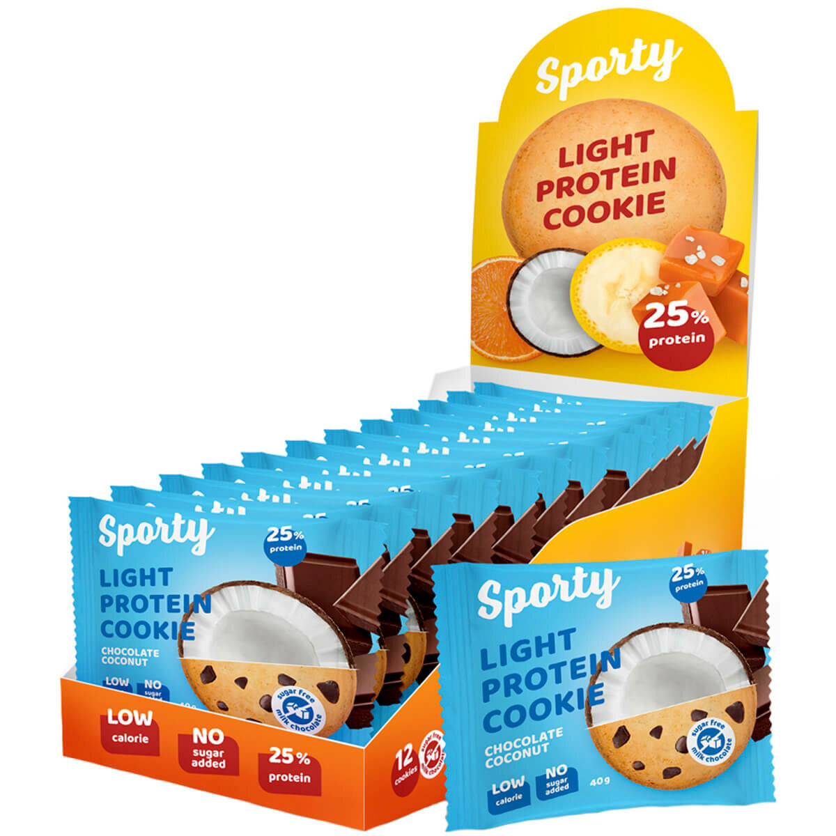 Печенье SPORTY Protein Light без сахара "Шоколад-кокос", 12шт*40г, SPORTY 1 267 ₽