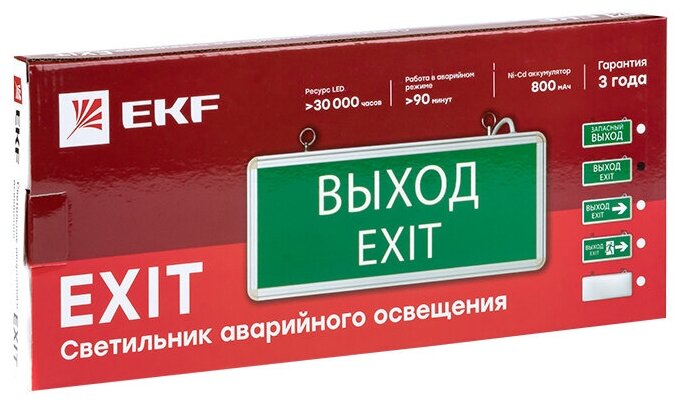 Светильник аварийно-эвакуационный EXIT-101 односторонний LED Basic EKF EXIT-SS-101-LED информация: