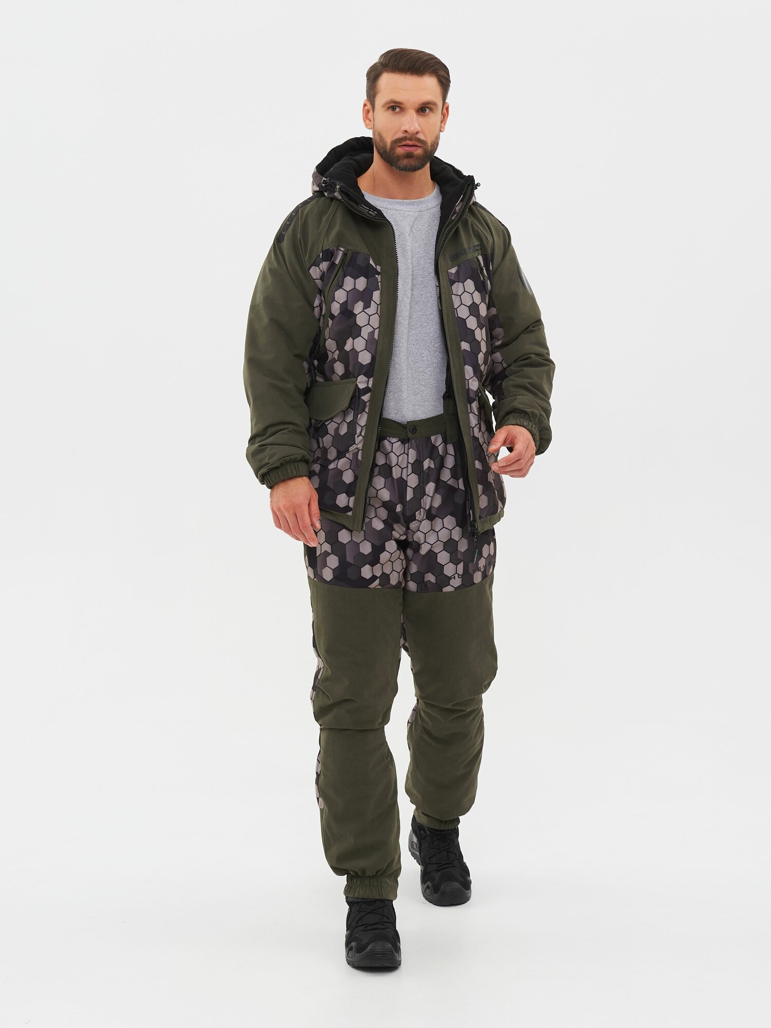 Костюм тактический мужской демисезонный на флисе Huntsman Горка Люкс рыболовный, охотничий, ткань Breathable Camo серый (р.56-58/170-176) 13 313 ₽