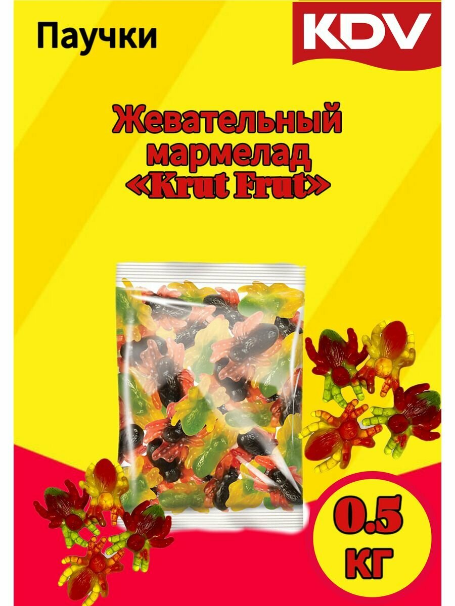 Мармелад KDV KrutFrut (КрутФрут) Пауки жевательный со вкусами клубники и ананаса, манго и абрикоса, 500 г