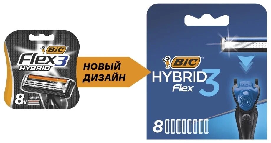 Сменные кассеты Bic 3 Flex Hybrid, синий, 8 шт. информация: