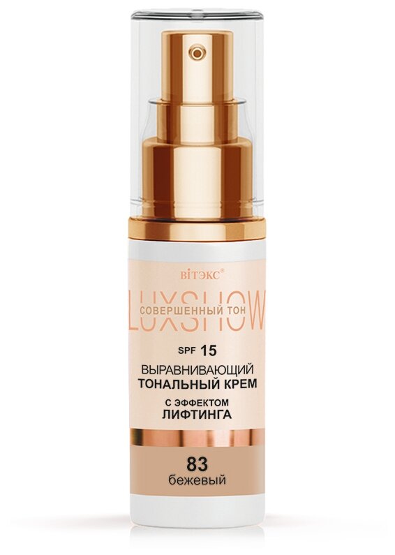 Тональный крем с эффектом лифтинга выравнивающий SPF 15 LUXSHOW тон 83 бежевый 30 мл. Витэкс 480 ₽