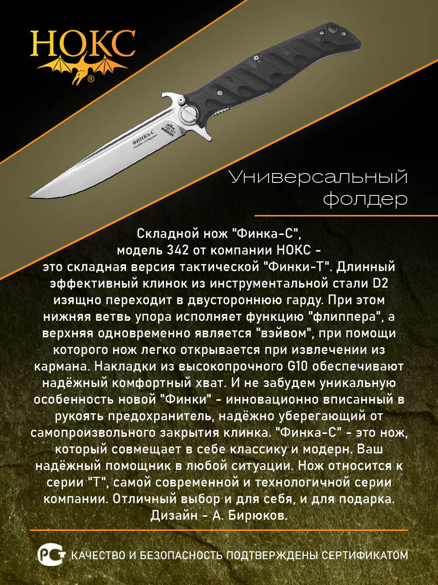 Отзывы на Нож складной нокс 342-100406 (Финка-С), универсальный складной фолдер, сталь D2