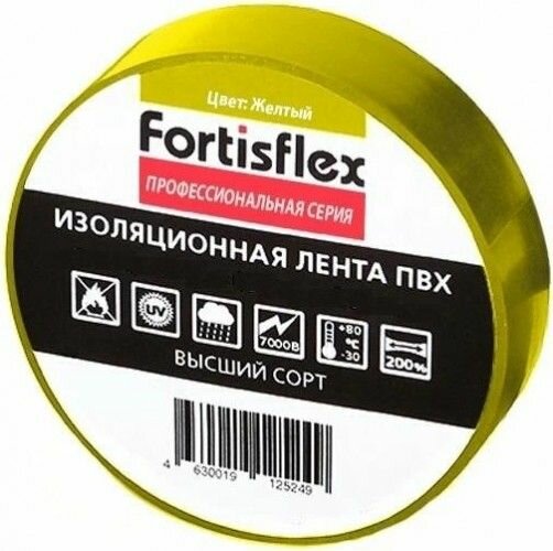 Изолента FORTISFLEX 71224 15 мм х 10 м, цвет желтый информация: