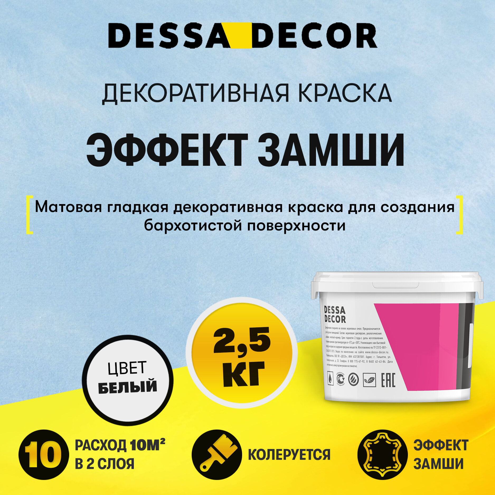 Декоративная краска для стен DESSA DECOR Антика 2,5 кг, декоративная штукатурка для стен с эффектом замши, ткани информация: