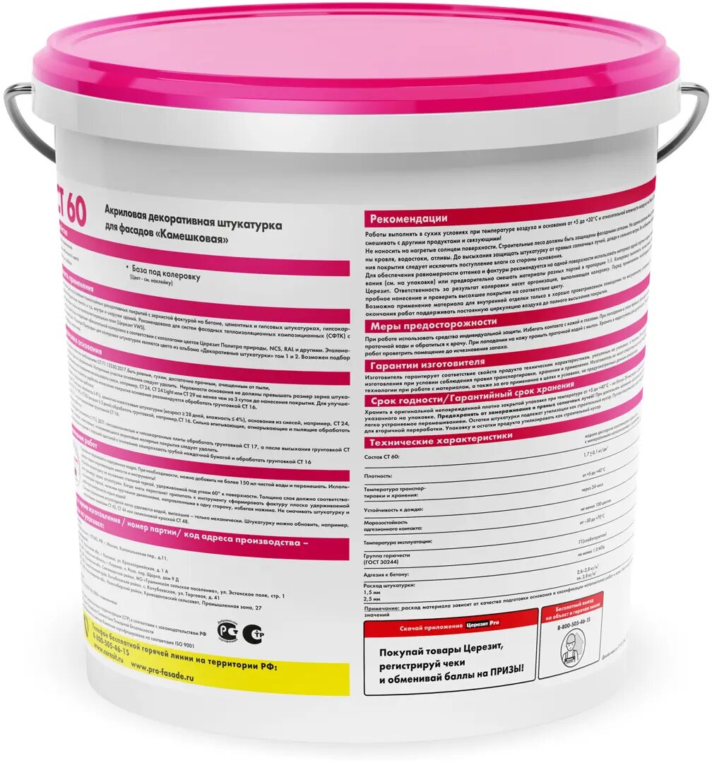 Декоративная штукатурка Церезит CT60 под колеровку камешковая 1.5 мм 25 кг информация: