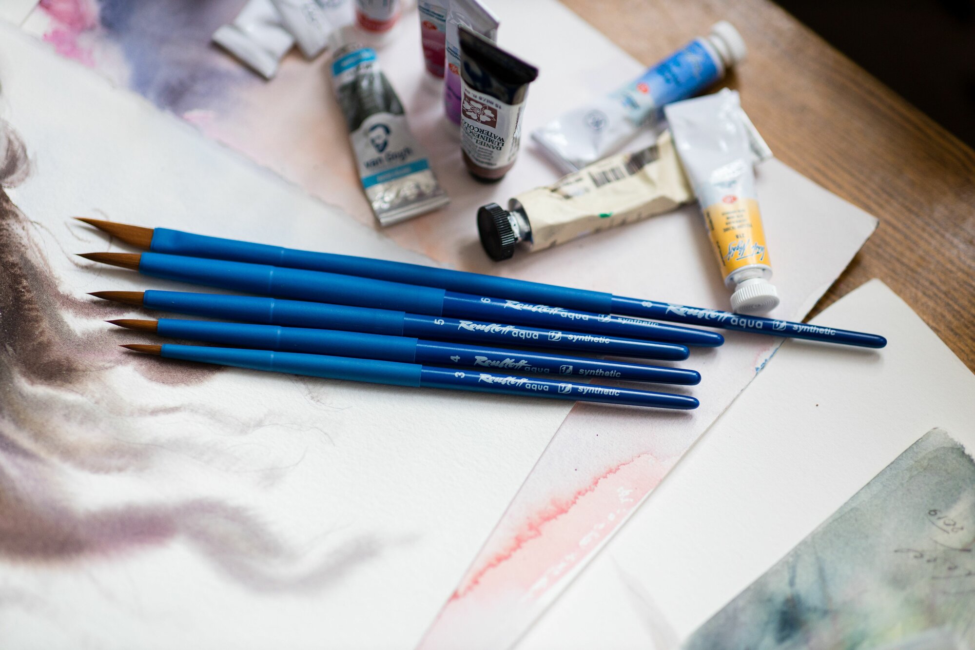 Roubloff Кисть Aqua Blue Round № 4 круглая из синтетики для акварели, короткая ручка 311 ₽