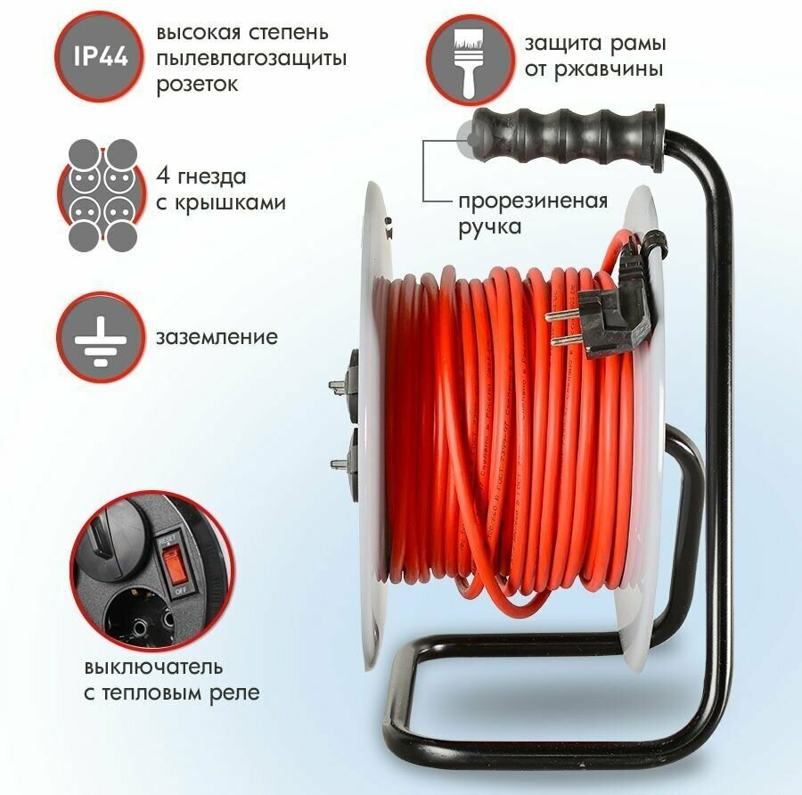 Удлинитель силовой на металлической катушке СУ-3х15-50/3 (с выкл. 4 розетки IP44) Ресанта информация: