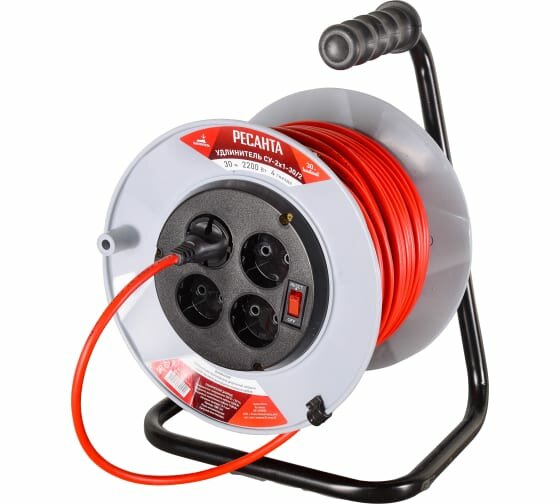 Отзывы на Удлинитель силовой на катушке СУ-2х1-30/2 (с выкл. 4 розетки) Ресанта