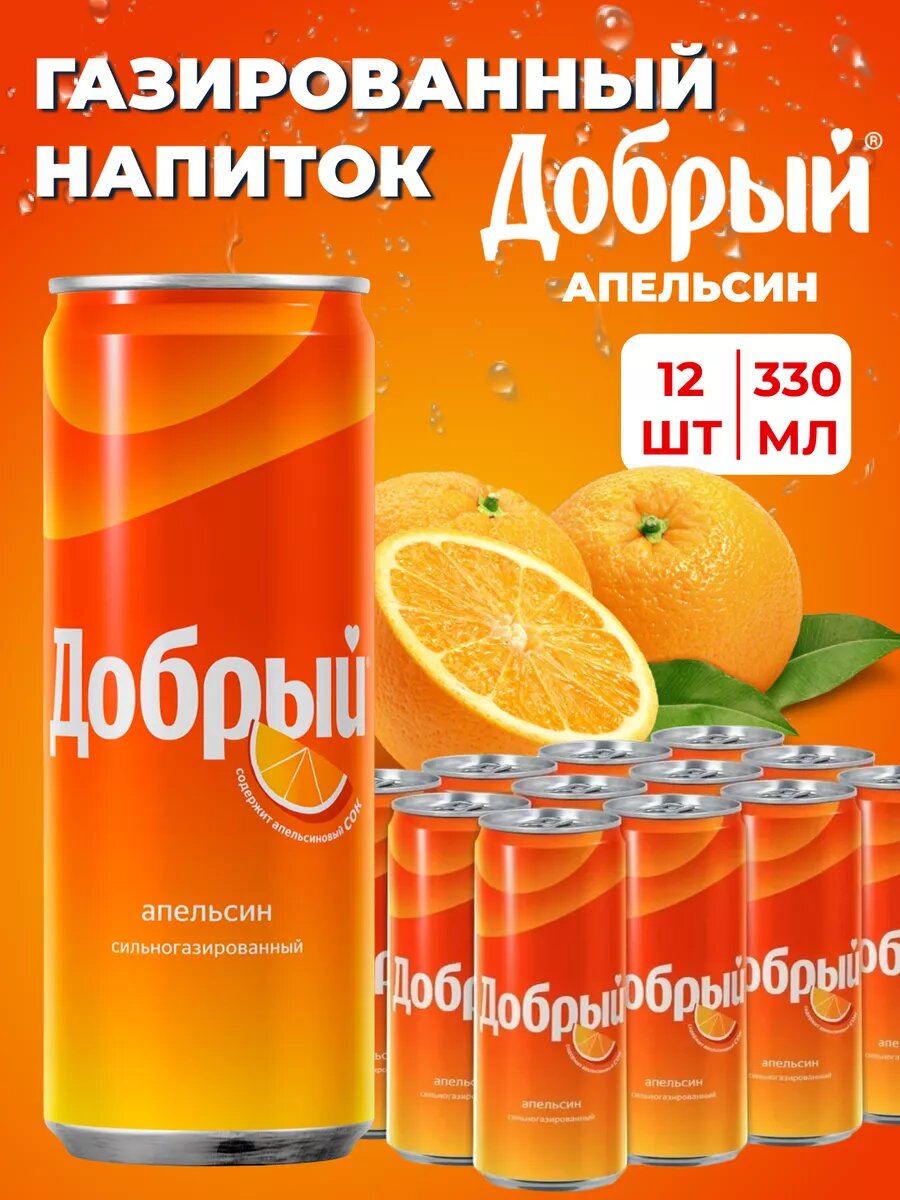 Газированный напиток в банках Добрый Апельсин 12 шт по 330 мл 999 ₽
