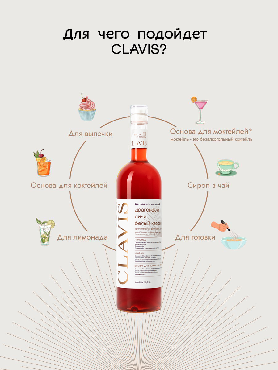 Основа для 15 коктейлей CLAVIS Драгонфрут, Личи, Белый кардамон, 750 мл 1 000 ₽