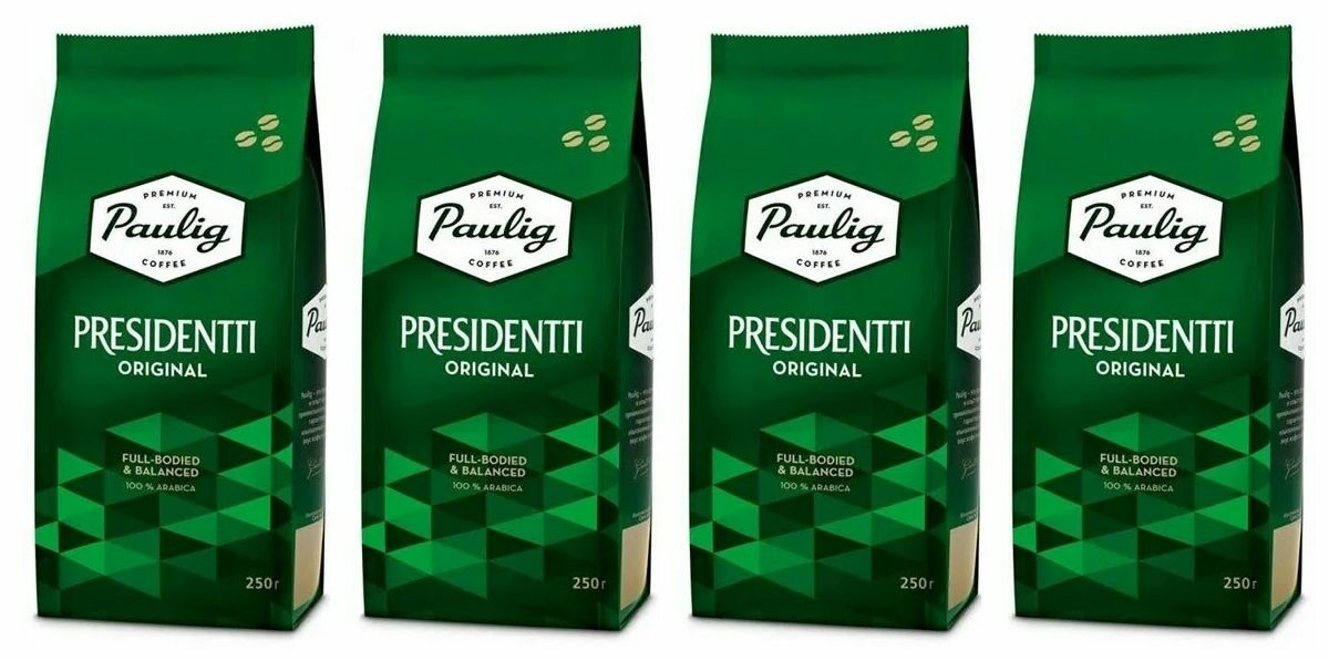 Кофе в зёрнах Paulig Presidentti Original 250 г, набор из 4 шт. информация: