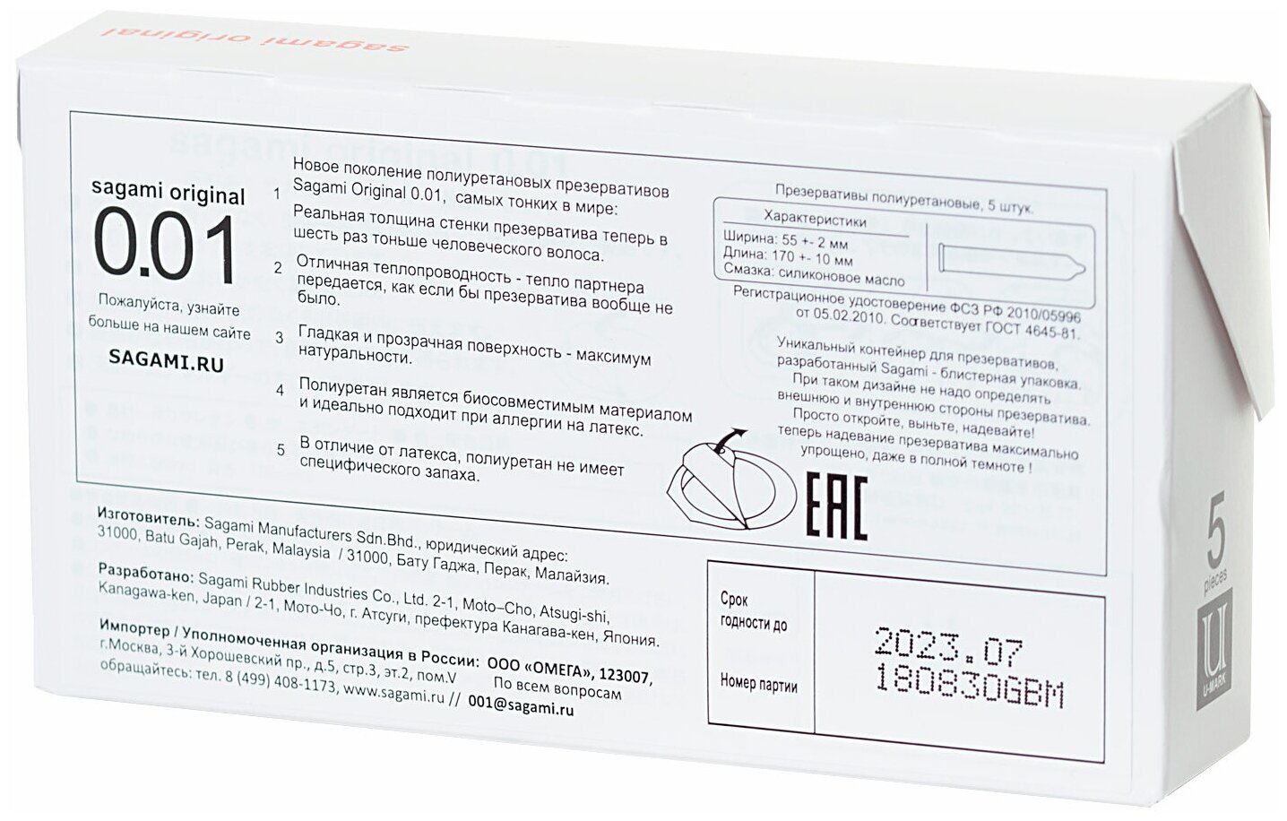 | Дополнительная информация | Ультратонкие стенки Sagami Original 001 прочны и надежны, обеспечивая такую же защиту, как и более плотные презервативы. |