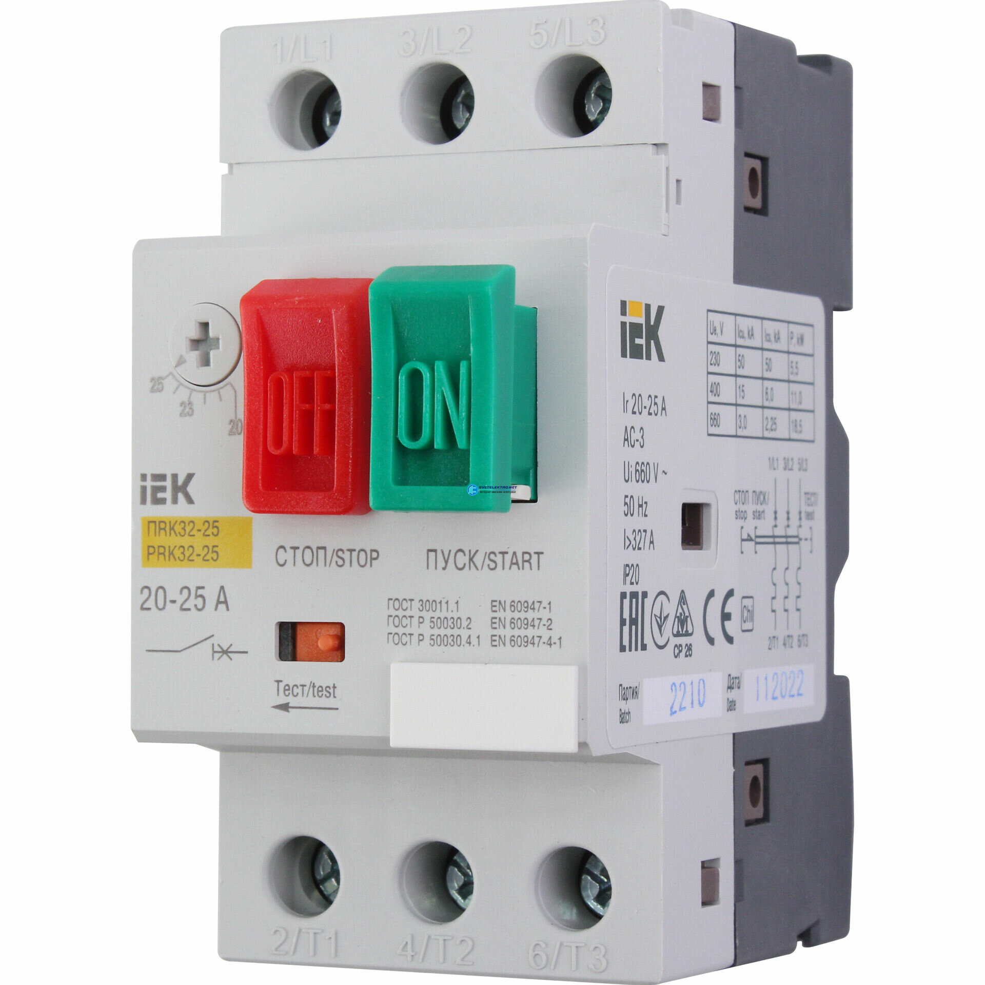 10 цен на Пускатель ПРК32 25А, 11кВт 400/660В. DMS11-025 IEK