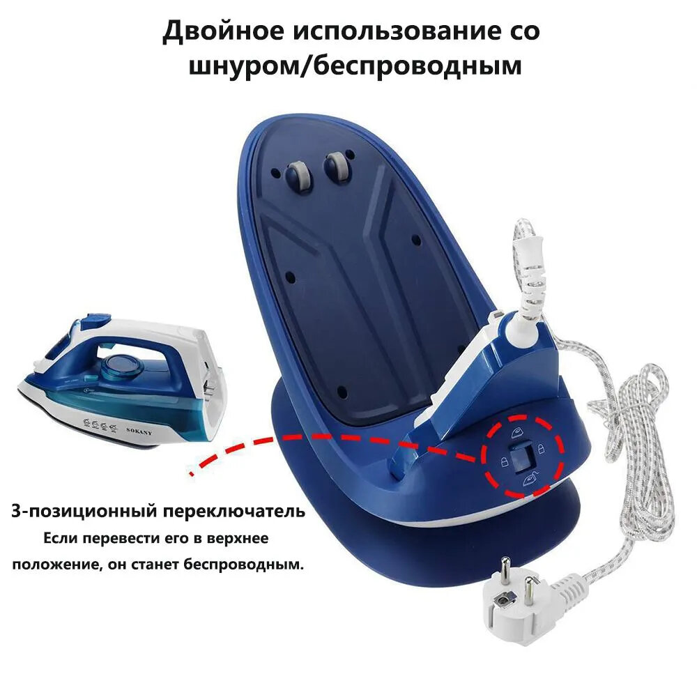 Утюг беспроводной, утюг с отпаривателем, паровой удар, Высокая мощность 2400 Вт паровой утюг, утюг с парогенератором, антипригарное покрытие, утюг для одежды с паром информация: