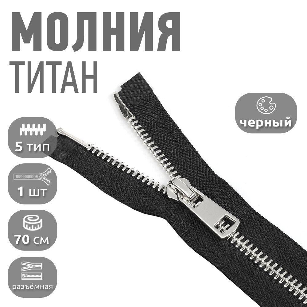 Молния металлическая, никель, черный, 70см, 1шт информация: