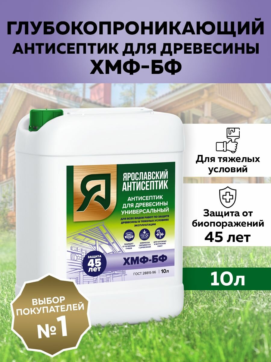 Ярославский Антисептик глубокопроникающий антисептик ХМФ-БФ для защиты древесины, 10 л информация: